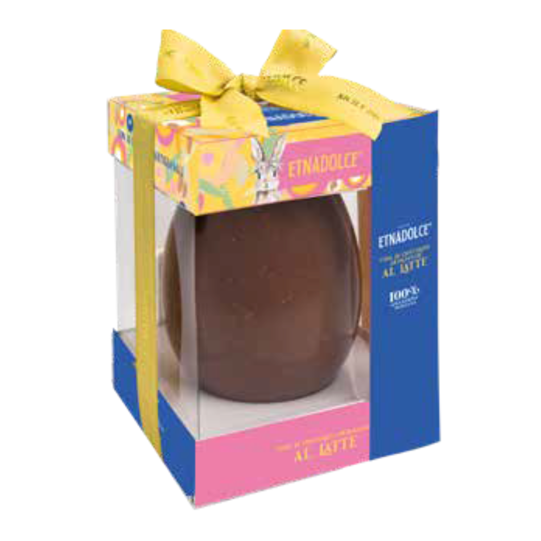The EtnaDolce Uovo Nocciolato al Latte pairs creamy milk chocolate with crunchy roasted hazelnuts, creating a rich, nutty bite with every piece.
